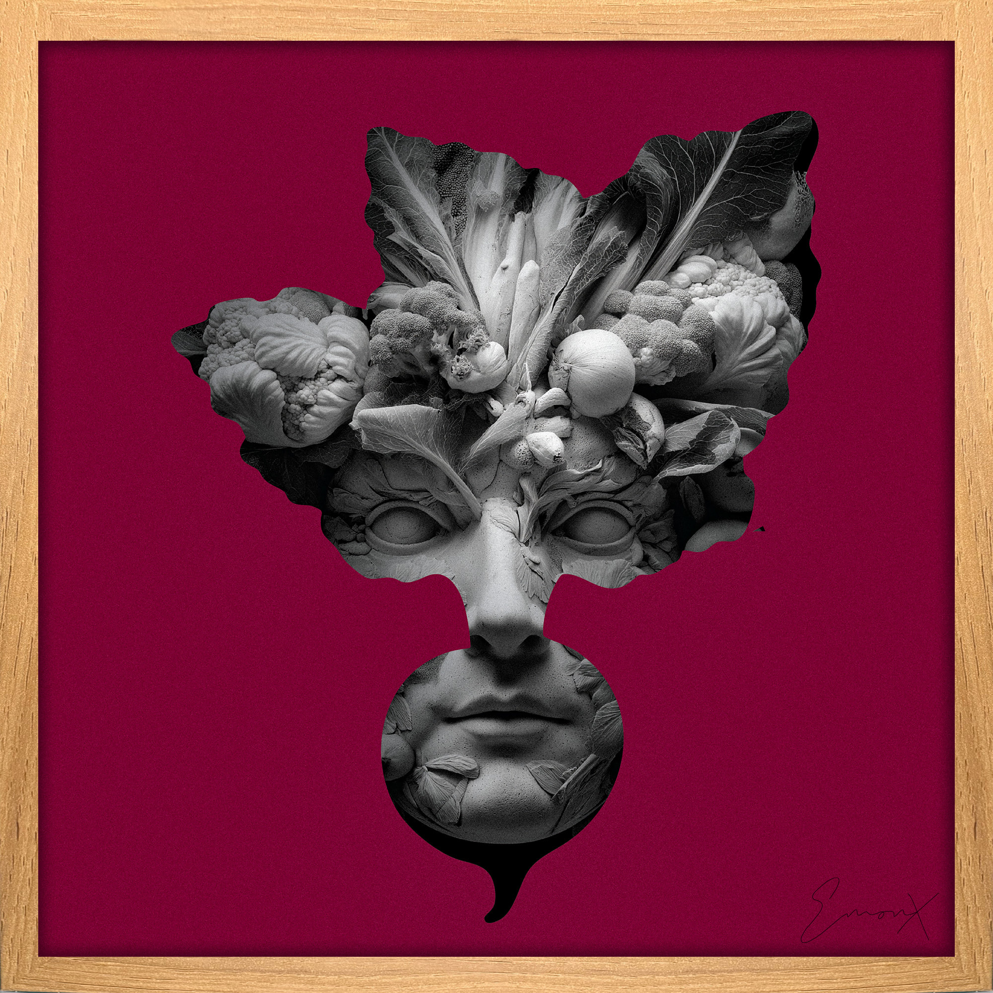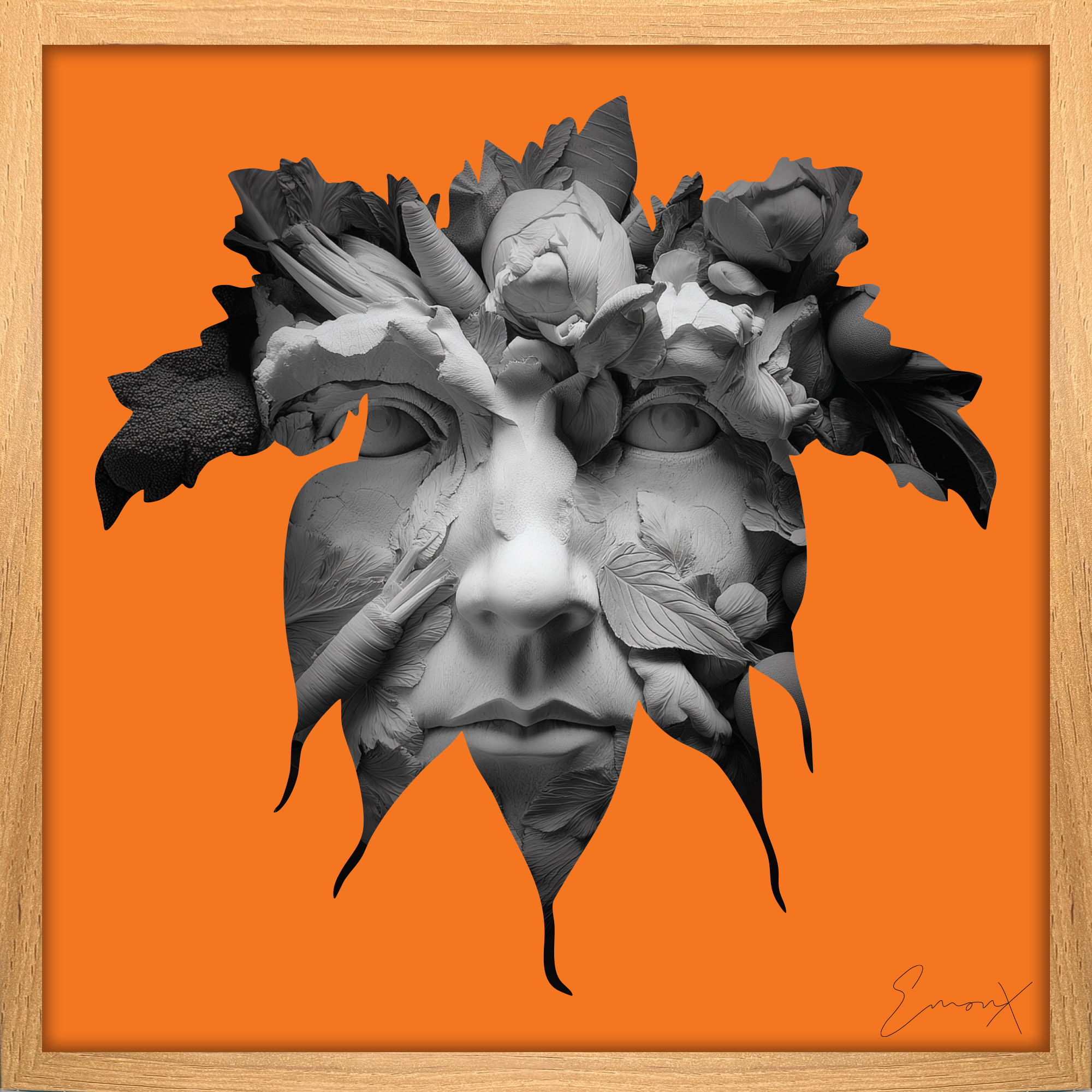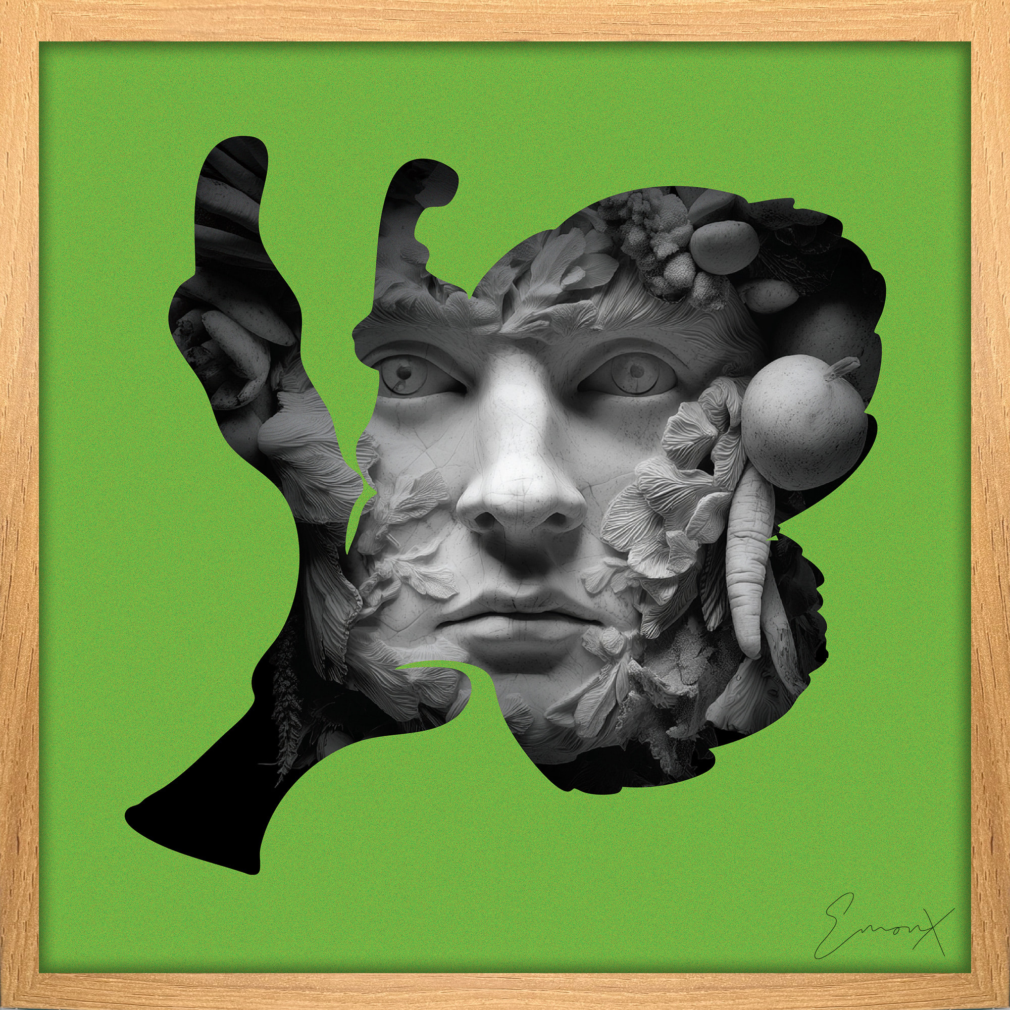 Each portrait is carved in negative space — silhouettes of faces and gestures etched into the bodies of vegetables. The organic material becomes a frame; the void becomes the subject. These figures are not assembled, but revealed, outlined by what surrounds them.